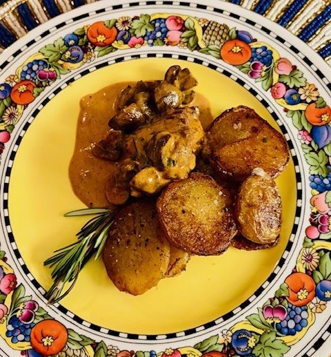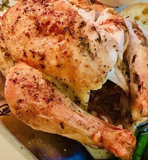 This chicken was roasted in a Romertopf clay pot although you could do this in a roasting pan or Dutch oven. I loved the clay