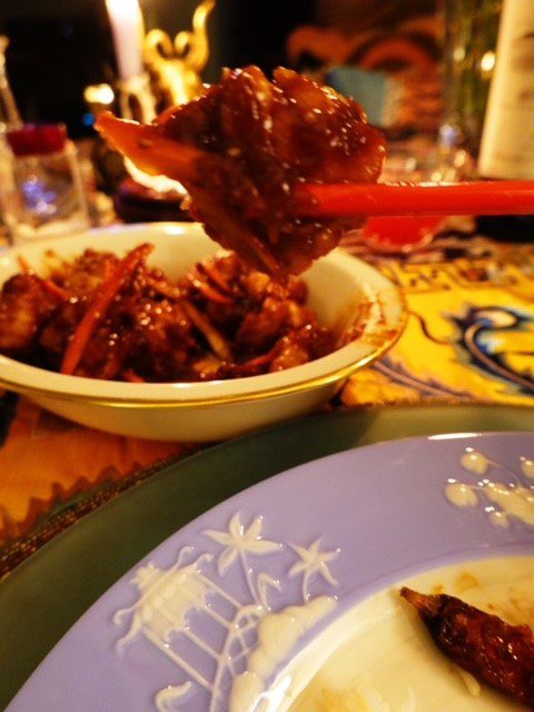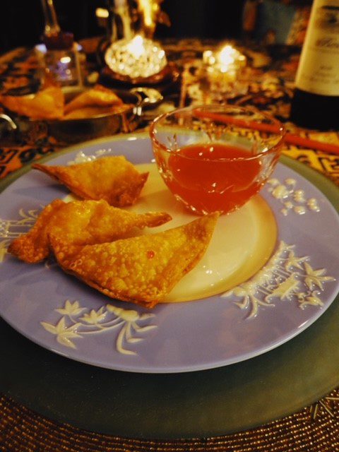 Check out the beautiful Lenox Pagoda china I snagged on Ebay. I am so loving these dishes. The band is a beautiful Wedgwood-y powder sky-blue. The plate showcases Chinese-American food perfectly … so elegant and understated. I picked up some Crab Rangoon at the neighborhood Chinese take-out shop and spent a Friday night making Sesame Chicken. It was a better than restaurant meal on a beautiful table that got my weekend off to a pretty great start.