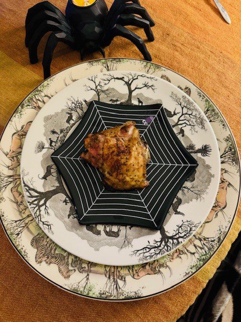 I figured one thigh per person, but the thighs are not huge, so if you have a big appetite, you might allocate two thighs per person!