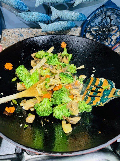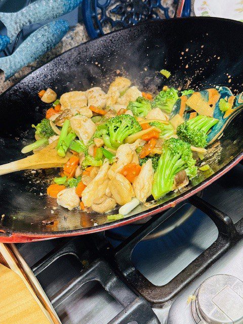 By the way, my 25 year old Le Creuset wok is so well seasoned that it is practically non-stick and makes stir-frying a joy.