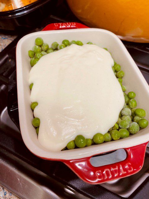 Cover the peas with the Bechamel sauce.