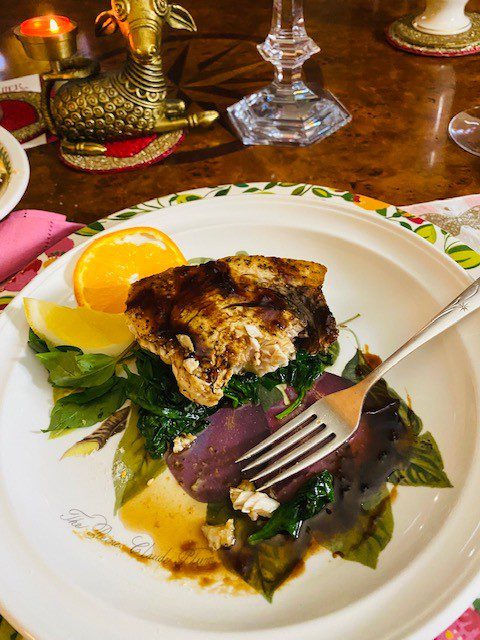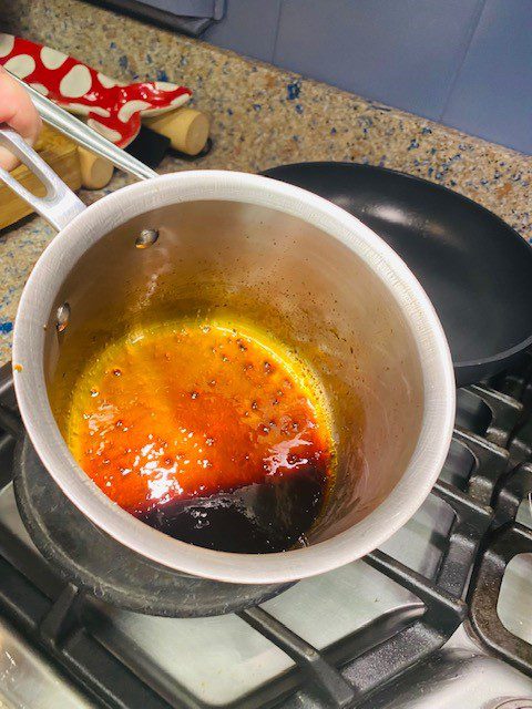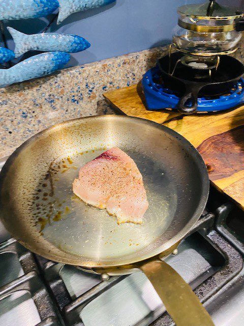 When the glaze has almost reduced to the desired syrupy consistency, pan saute the fish.