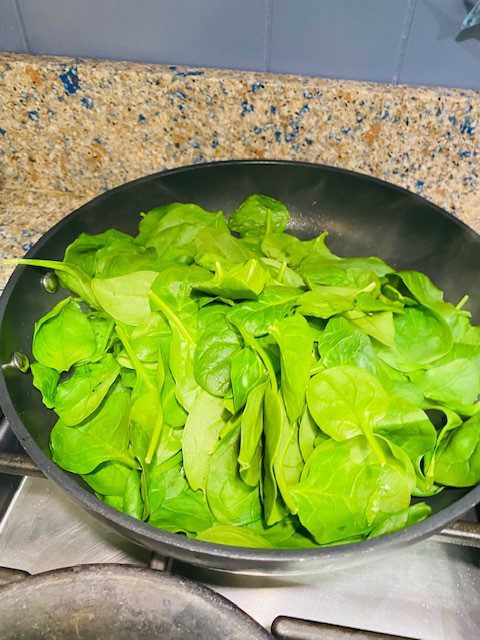 Over medium high heat, swirl a tablespoon or so of good olive oil in the hot pan. Then when it is almost smoking but not (!) lay a piece of fish in the skillet. Don't disturb it for a few minutes. Adjust the heat beneath the skillet if necessary. You want a sizzle but you have to cook it on both sides so don't overheat the pan! Let it get cooked on one side, then turn it over and cook it on the other side. Some people like swordfish slightly medium rare or even rare. I like it cooked through but NOT cooked dry. You can put it in the oven on an oven proof platter at 250 to 300 degrees for a few moments to keep it warm if necessary while you finish your sauteed spinach (or whatever you are serving on the plate with the fish).