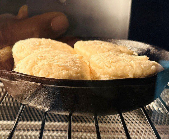 Bake at 450 degrees until lightly brown on top, and a little more golden brown on bottom. You can take one out and test it and pop them back into the oven if necessary. Slather them with butter. Eat while they are HOT.