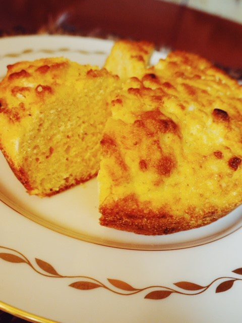 Cook the cornbread for 20 to 22 minutes, until golden brown on top (which is going to be the bottom because you are going to turn the bread out of the pan into a serving plate).