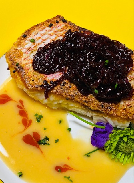 PAN ROASTED SNAPPER WITH BEURRE BLANC & RED ONION JAM
