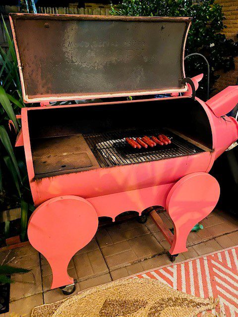 Really good Nathan’s beef weenies cooked to plump delicious juicy perfection on the Traeger grill – what could be better? My Traeger grill is a special custom made Pink Pig. It’s my go-to grill for foods that do not require a high temperature char or long slow moist cooking. In my opinion, a Traeger grill is like an outdoor oven. It works best for foods that need to cook at about 350 to 400 degrees with just a scant amount of smoke.