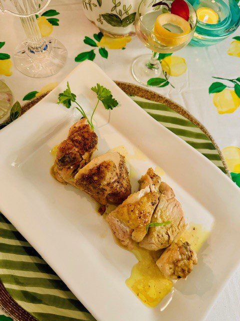 Rao’s is an iconic New York Italian restaurant, famous in part for its Lemon Chicken. I have never been to Rao’s but I would like to go! The restaurant’s owner Frank Pellegrino has written two cookbooks showcasing Rao’s recipes and other Italian “neighborhood” recipes. Lemon Chicken is a deceptively easy recipe but I think the secret is broiling the chicken to the proper degree of doneness and cutting it into pieces between the first broil and the second. If you don’t like lemons, then forget about this dish. (Fuhgeddaboudit!) This dish is mouth puckeringly lemony. I added a little honey to the sauce to take the edge off that lemon and I think it improved the dish overall.