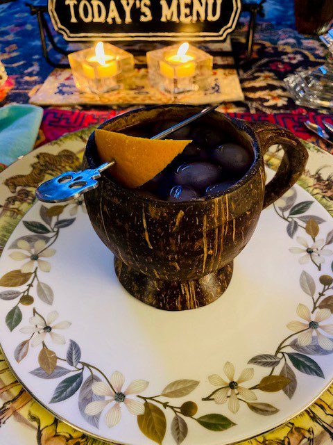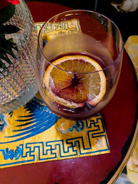 It was too hot on a Sunday night in July in New Orleans to do anything! Except make a batch of Sangria!!! This was refreshing and tasty and perfect served over ice in an exquisite Waterford goblet OR (over ice) in one of Patrice’s handmade coconut mugs from Jamaica. The secret is the Grand Marnier. Try it!