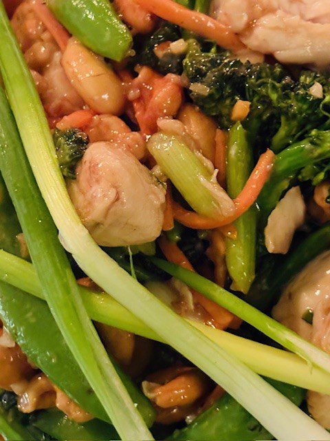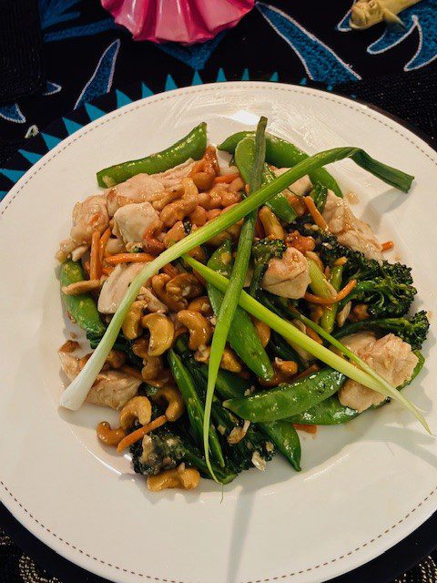 Sometimes you just feel like a nut. Or, like tossing together a stir-fry with whatever ingredients appeal to you in the moment. This dish was delicious, so fun to make and so appealing on the platter. Unlike the dishes you might order in a Chinese American restaurant, this one has as many almonds as you like… as many or as few carrots as you want… and the MOST delightfully silky and tender velveted chicken. If you learn the technique of velveting proteins in Chinese cooking you can make the most wonderful dishes with the ingredients you prefer.
