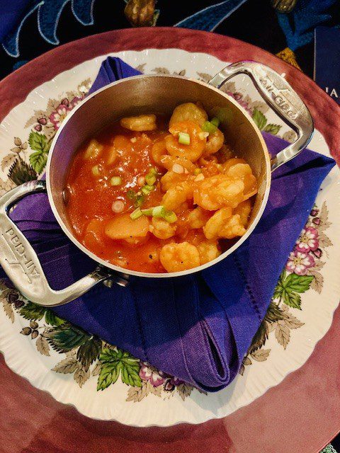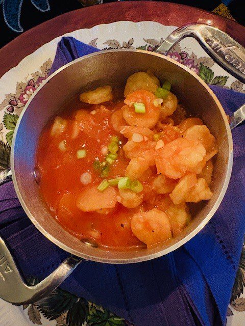 There’s a Chinese restaurant in New Orleans called Five Happiness that used to serve a Tomato and Shrimp Soup with Sizzling Rice. They still serve the soup but they no longer serve the sizzling rice which is too bad because it was a delicious dish with a wonderful presentation. I came across the directions for making the sizzling rice in one of my vintage Chinese cookbooks, then found a separate recipe for the soup. This was a great weeknight dish — deceptively quick and easy — fun to eat and delicious. And because I learned to love this soup at Five Happiness, I decided to name it Wufu Soup.