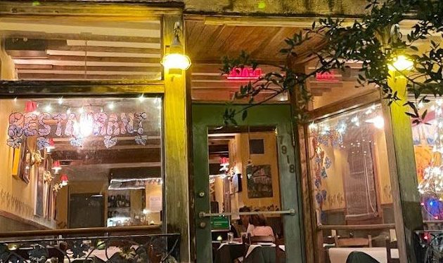 What a romantic little restaurant on Maple Street in New Orleans! The menu is classic French bistro with mussels, escargot,