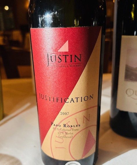 In 2010, a Wine Enthusiast review said this about the 2007 Justin Justification: “Easily one of the best Justin reds in years. An unusual blend of Cabernet Franc and Merlot, it shows a wonderful texture, courtesy of softly ripe tannins and just-in-time acidity. The flavors are all cherries: pie filling, red currants, and ripely fresh fruit off the tree on a hot summer day. Delicious and compelling.” I was not able to find a recent review and obviously this wine has aged significantly since that 2010 review. But I have now had two bottles, and on both occasions the wine just kept evolving in the glass and getting more gorgeous and complex. I wonder if I’ll ever find another bottle of this vintage! Who knows? If it is out there, I’ll find it!