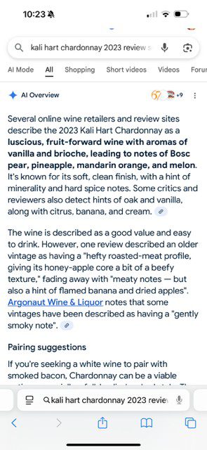 I thought I hadn’t washed my wineglasses properly! I took a sip and tasted SMOKE. Like the kind of smoke that comes from my Traeger grill when I use the mesquite pellets! I grabbed another wine glass from the cabinet and tried again. Yep, that’s smoke alright! I think the smokiness may have faded after a few hours but by then I had lost interest and poured something else. I thought this was an odd wine. Wine Spectator said: Firm and toasty, with notes of grilled bread and dried spices alongside a core of peach and mango. Nutmeg and cardamom details linger on the firming finish. Drink now. 30,000 cases made.
